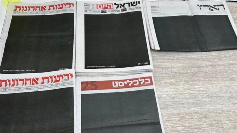 غطى اللون الأسود الصفحات الأولى لصحف إسرائيلية صادرة الثلاثاء، مع عبارة “يوم أسود للديمقراطية الإسرائيلية”.