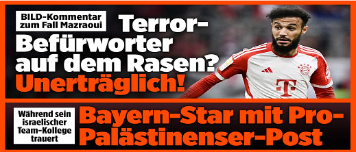 الصحيفة قالت أنه “على محترف بايرن نصير مزراوي (25 عاما) أن ينأى بنفسه بوضوح عن أعمال حماس الدموية. وشرح سبب ترحيبه بشعارات الكراهية من حساب يدعو إلى إبادة إسرائيل”.